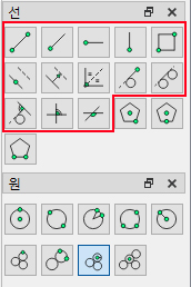 빨간 박스안에 있는게 모두 "선"그리기 메뉴이다.